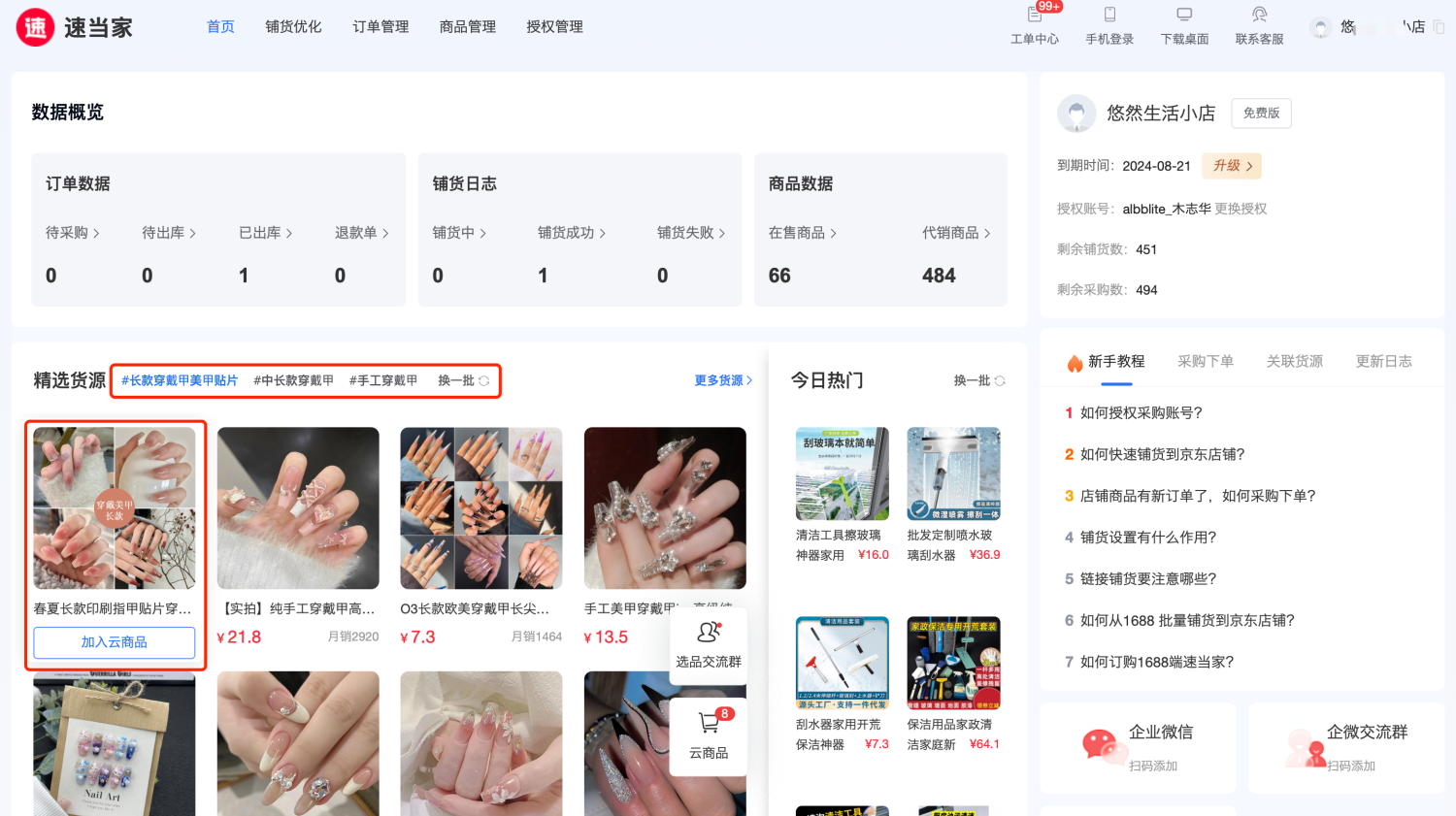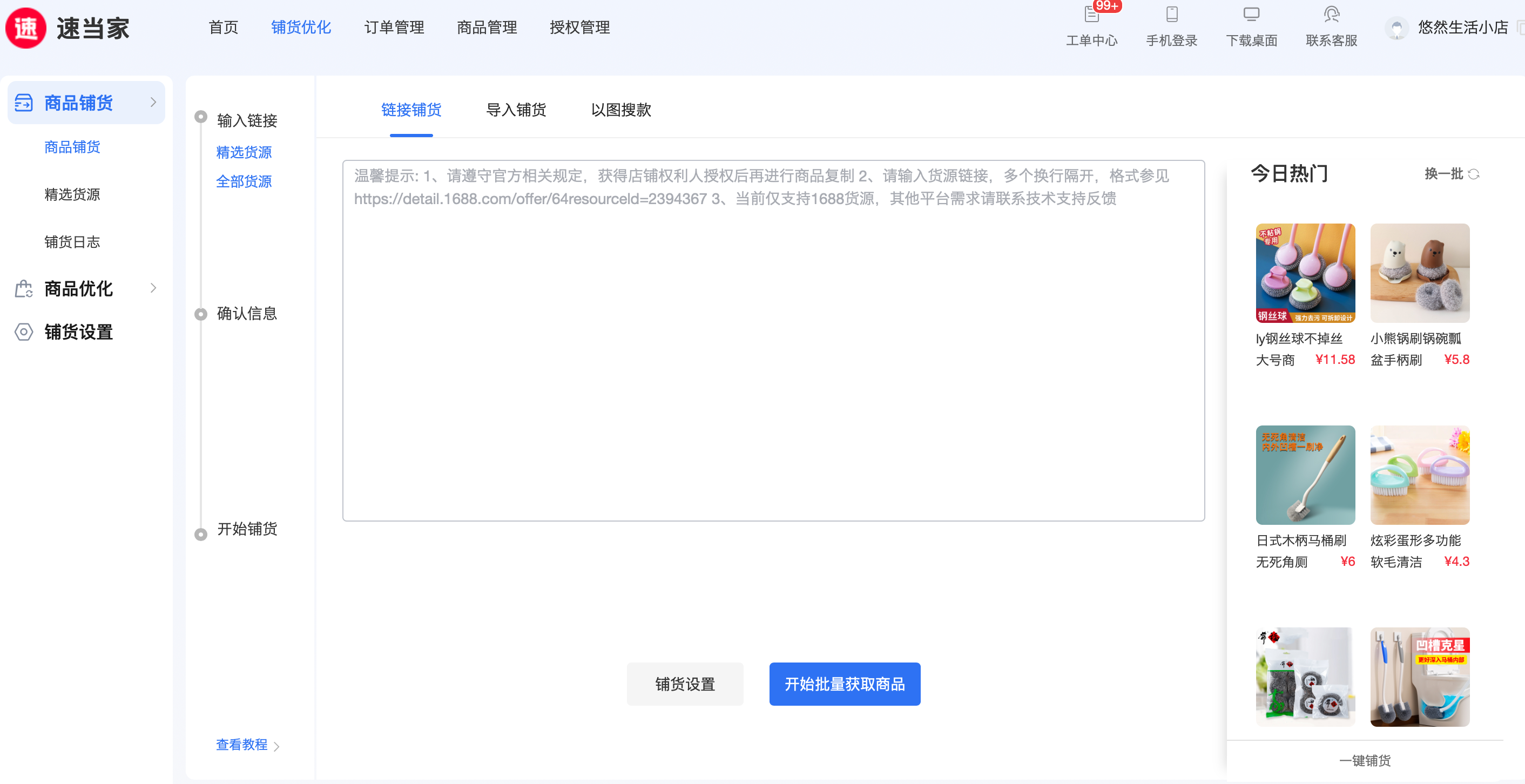 无货源一件代发,是目前火的开店方式,成本低,无需囤货,没有资金风险。但是在店铺经营铺货过程中,还需要遵守平台规则。若使用中有任何疑问,可在软件右上角【联系客服】解决