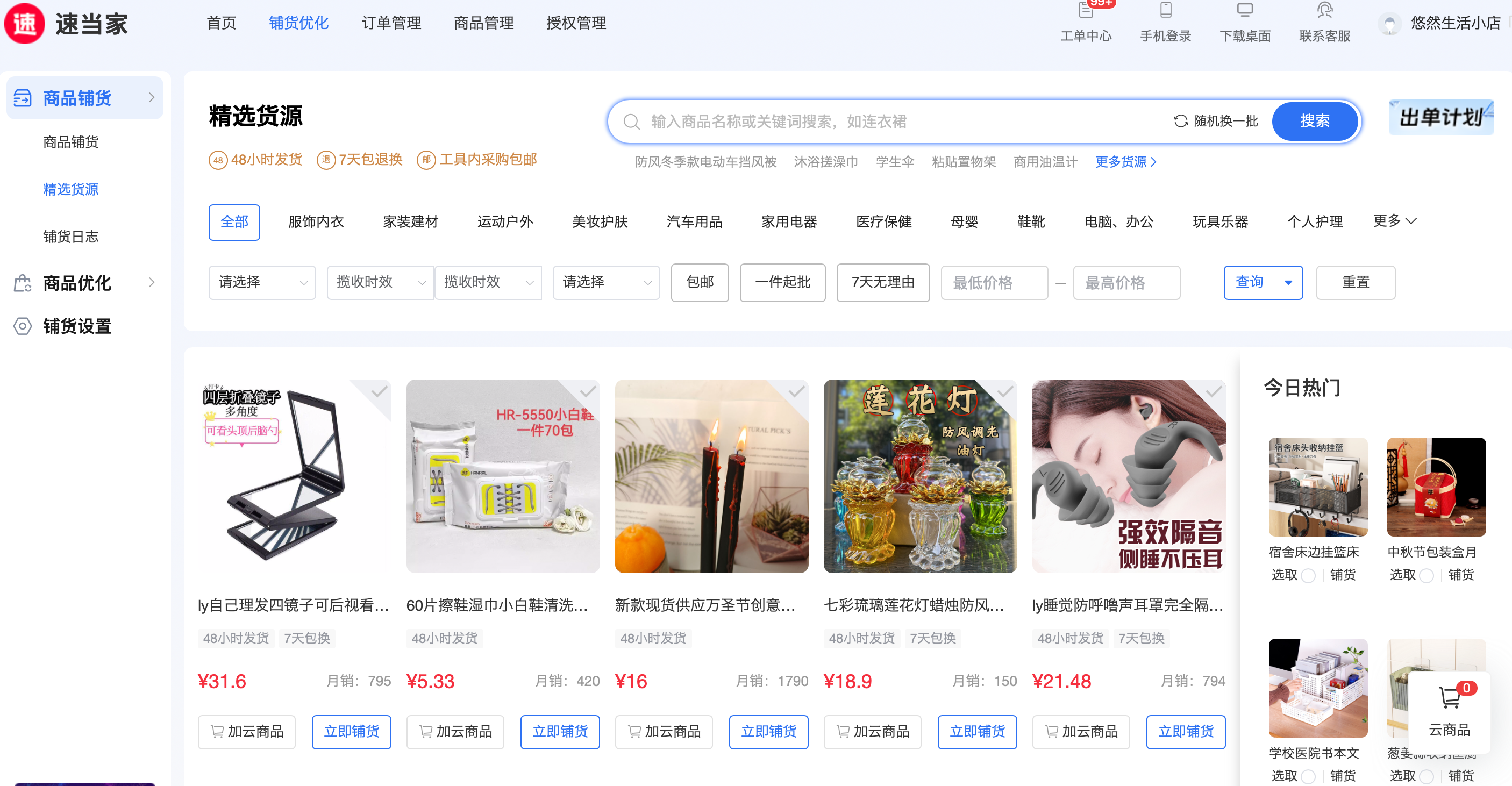除了速当家精选货源外,商家也可以直接在1688平台选品。