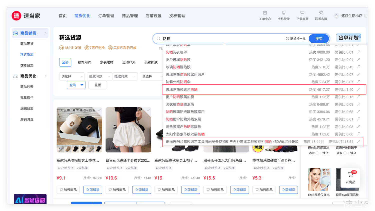 在此,速当家免费提供4种选品方式,帮助商家找到具备潜力的蓝海产品,一键铺货,快速上新~
