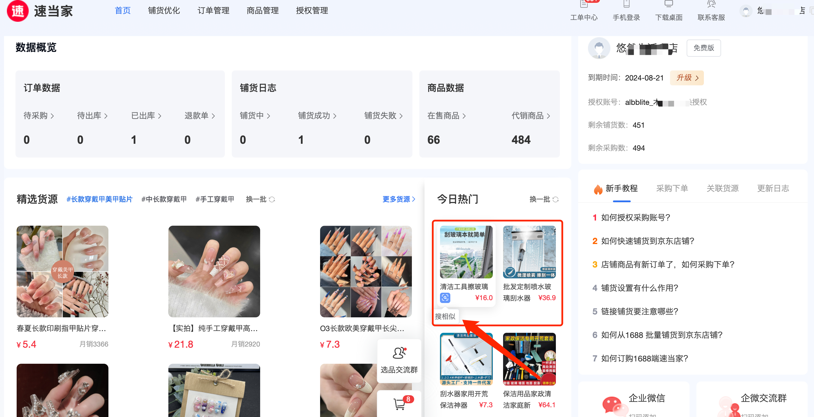 如何在精选货源选品并铺货?