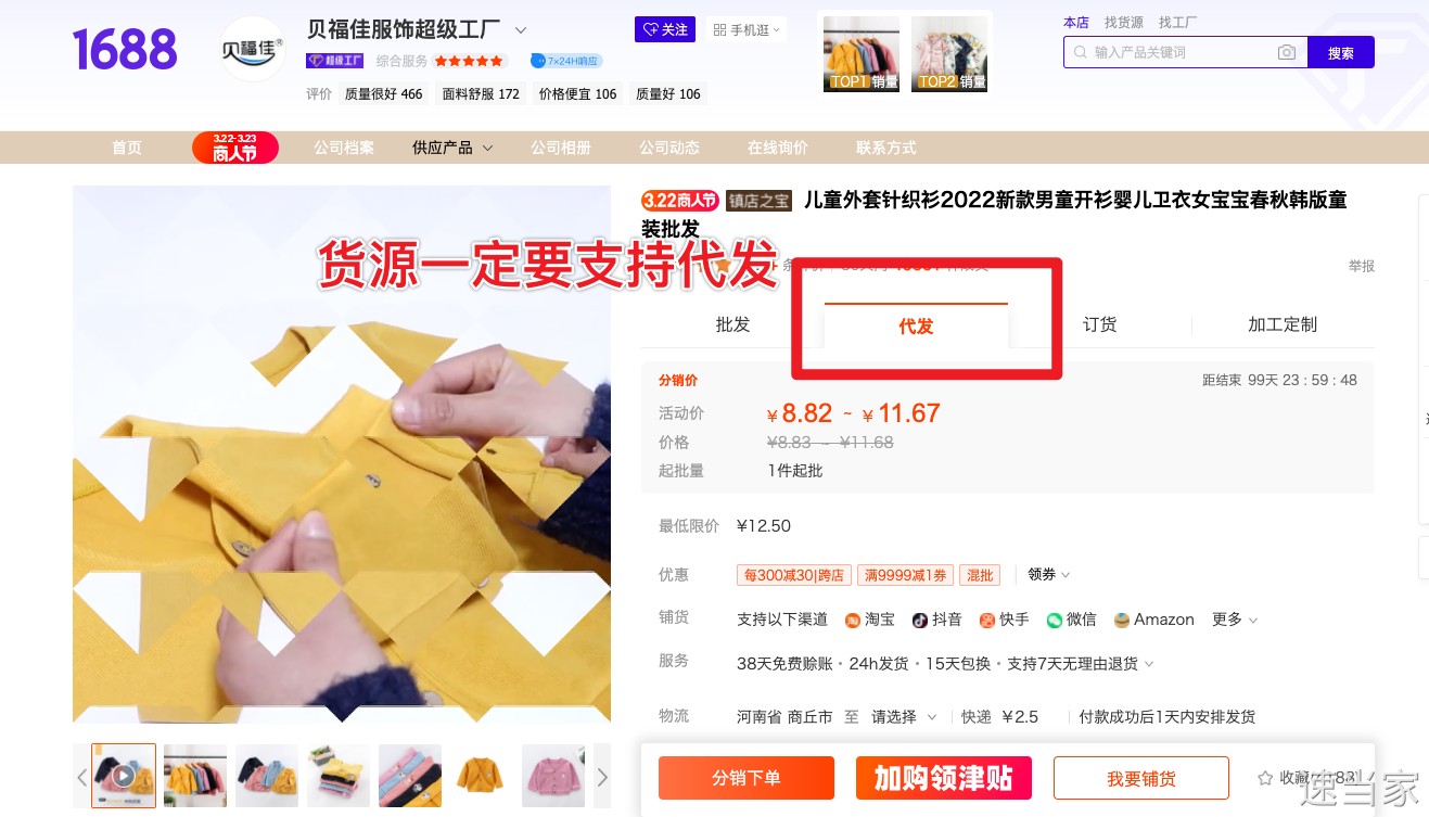 链接铺货商品条件:链接铺货的商品要支持分销,否则会影响后续采购;