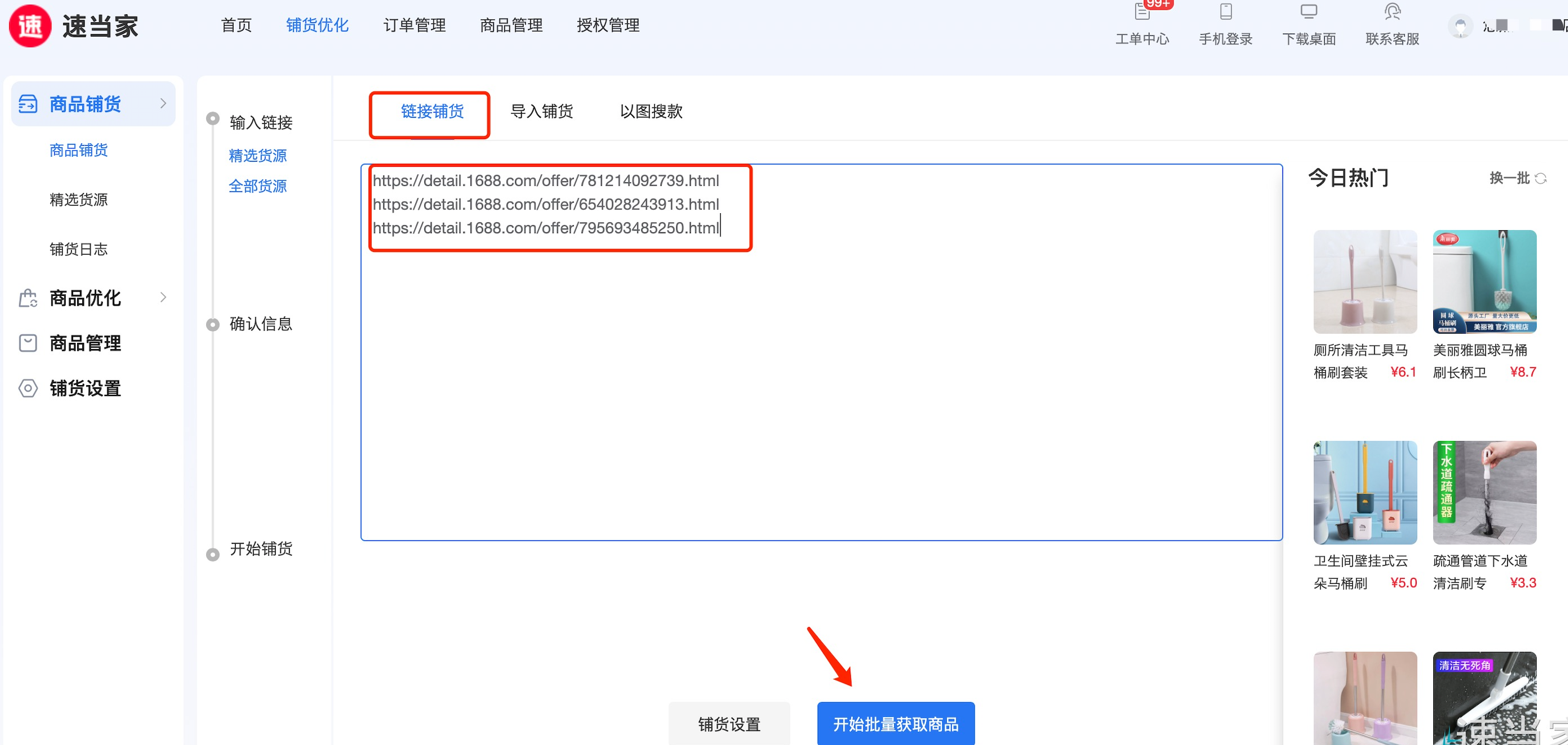 不论是链接上货/链接关联货源/链接更换货源,都要满足货源要支持铺货代发的条件。