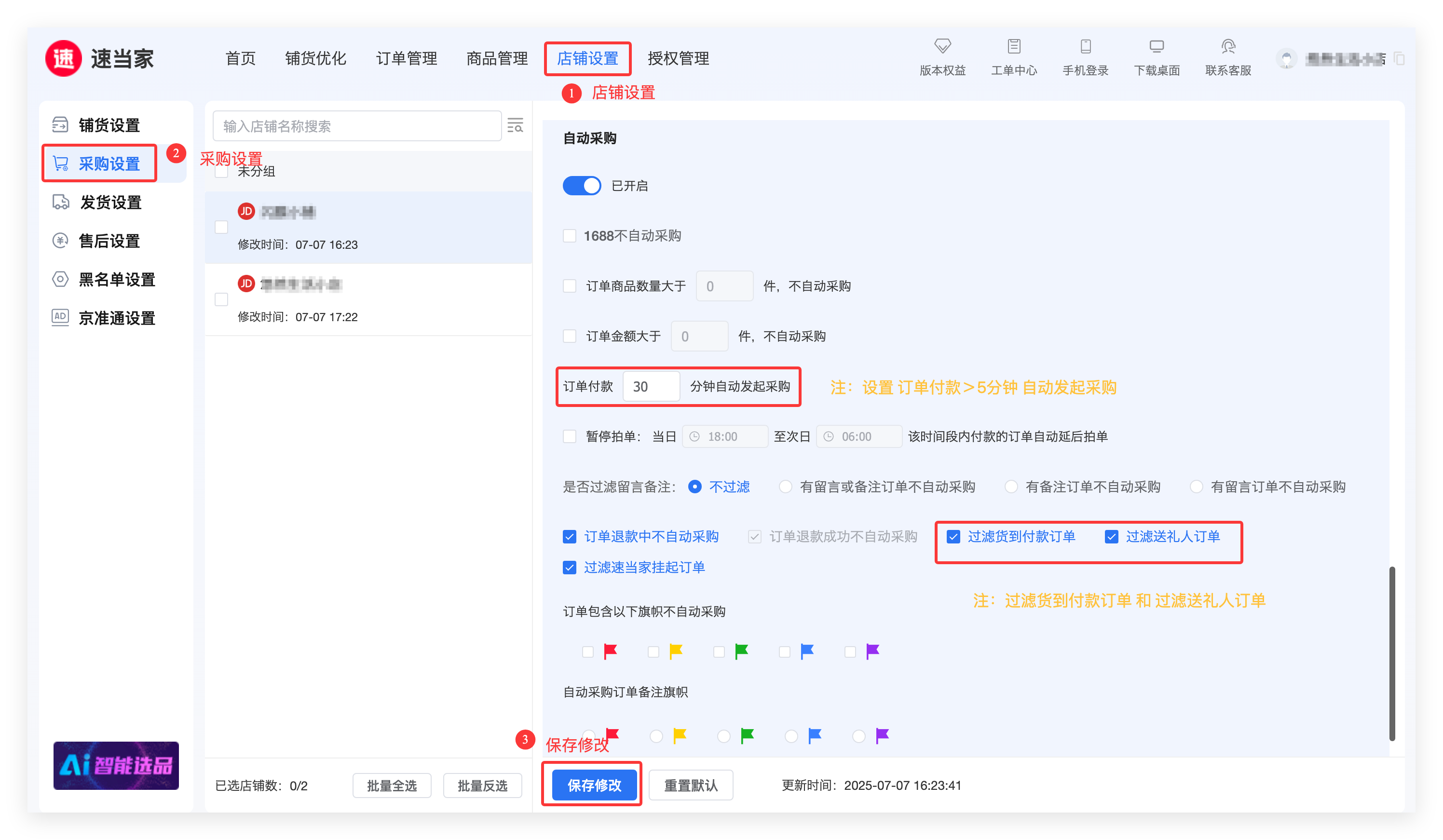 订单量多的店铺,为了提高采购效率 可以开启自动采购。 注意:在自动采购前,需要先购买磐石安全_虚拟号服务包