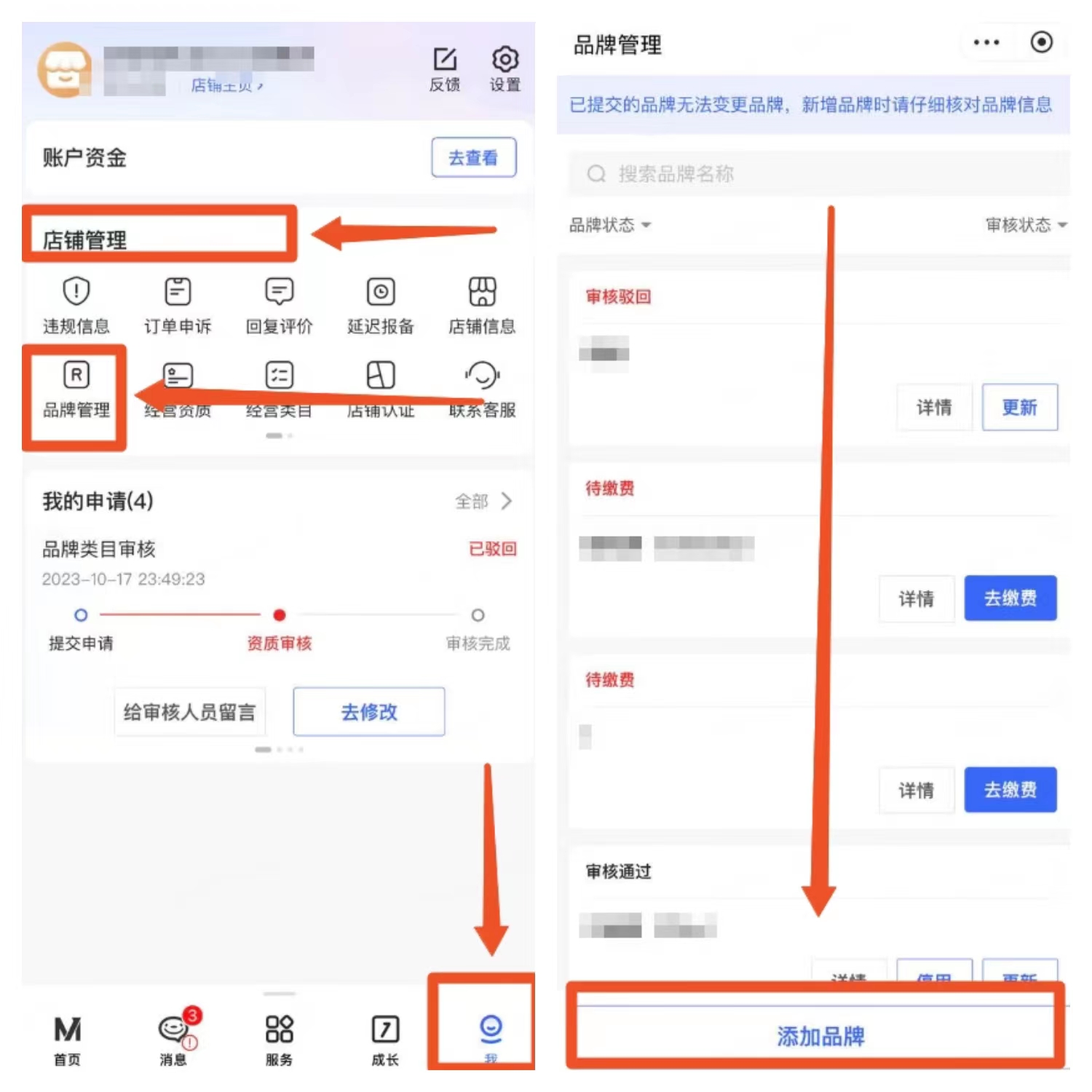操作路径:我 > 店铺管理>品牌管理>添加品牌