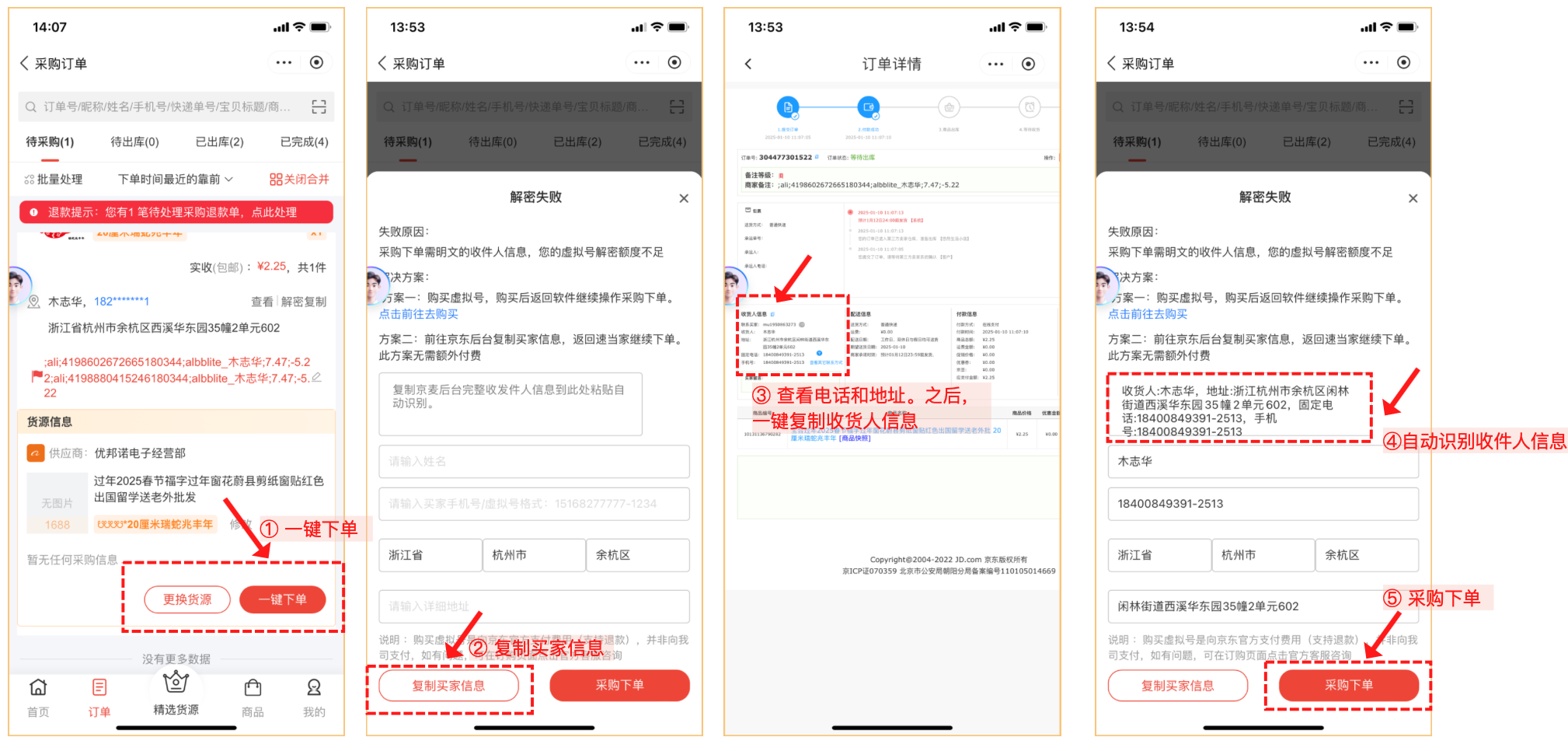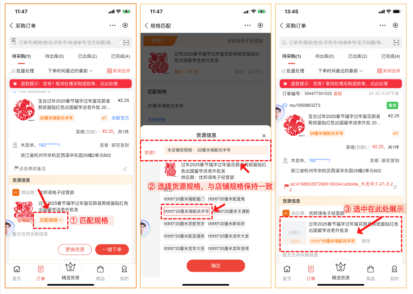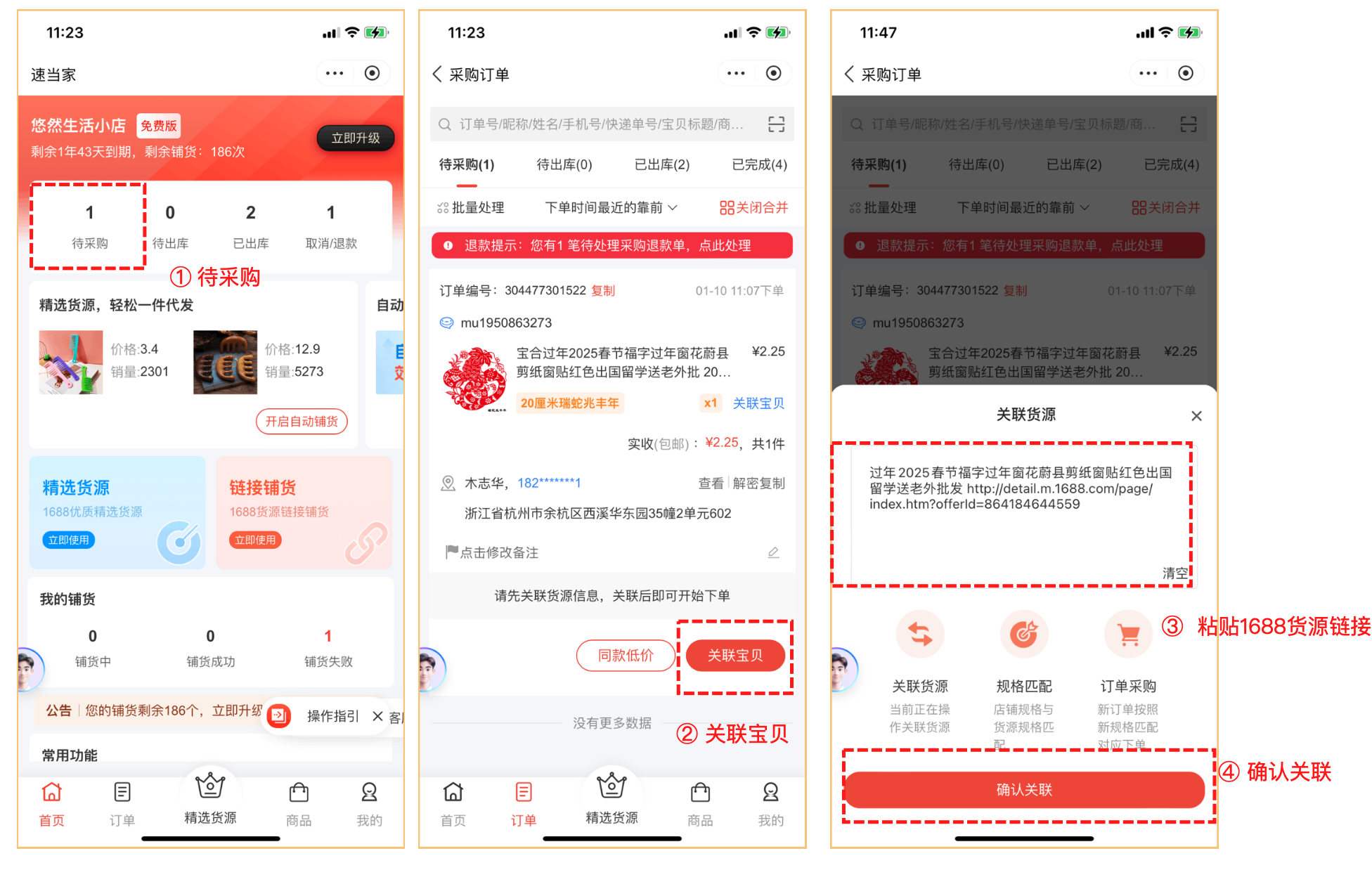 在京麦后台发布的商品 或者 通过其他软件铺货,订单也能自动同步,只需关联一次货源,下次自动记忆买家下单后即可快速采购下单,自动发货!