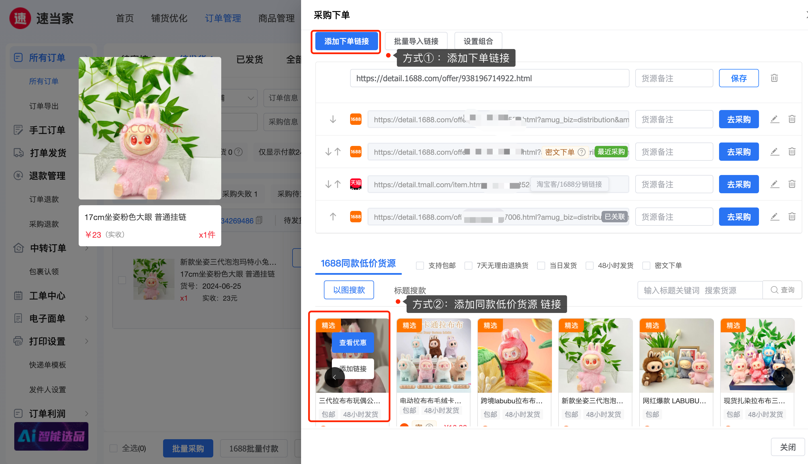 方式②:添加同款低价货源 链接