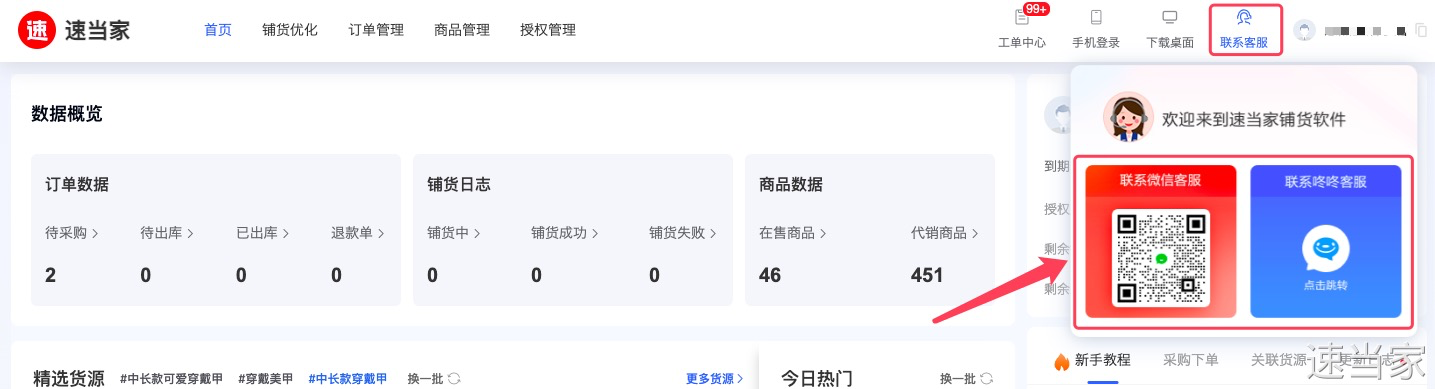 速当家软件使用中有任何疑问,可咨询在线客服为您解答,9-18点在线