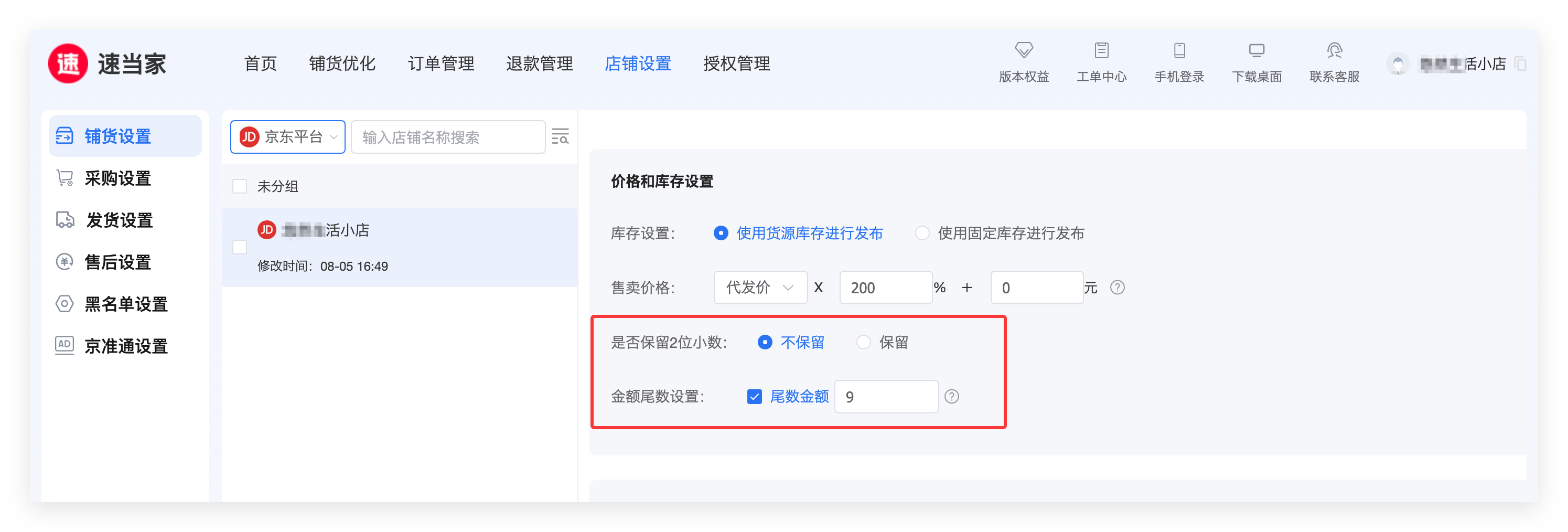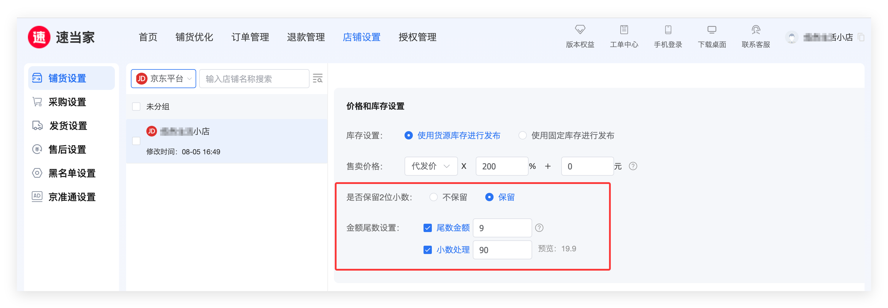 另外,速当家支持尾数定价法,比如常见的9元定价法。
