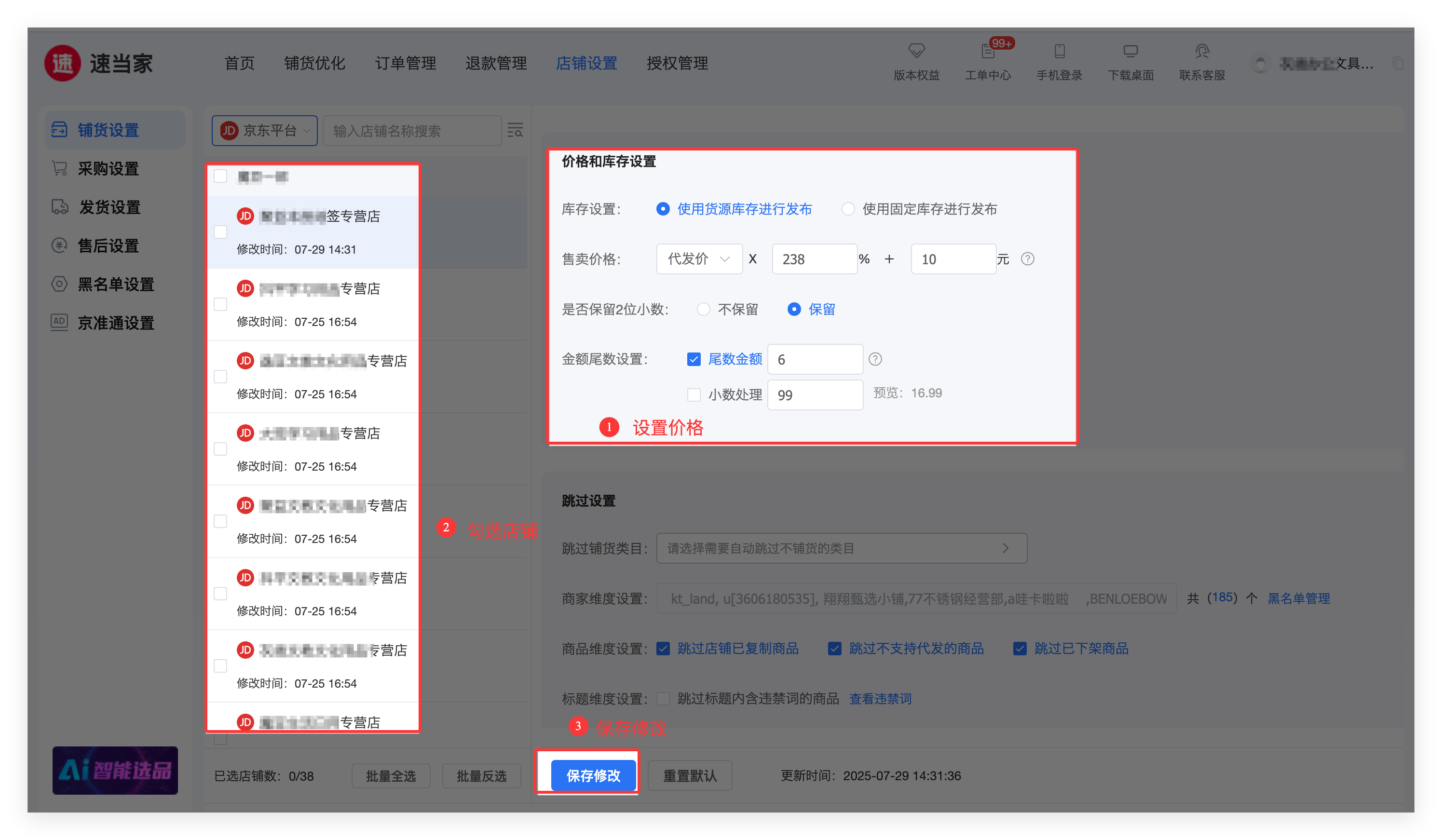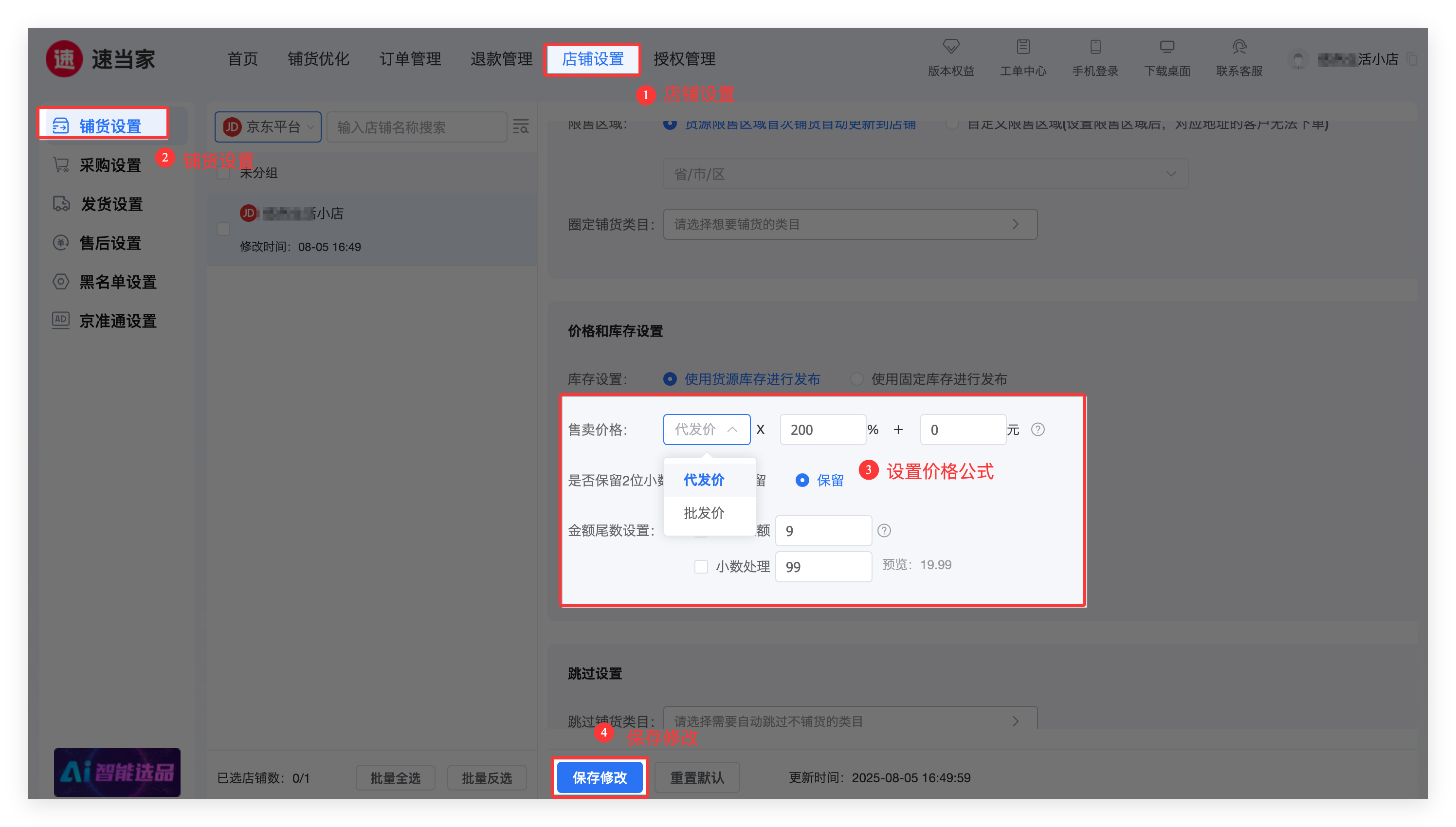 在铺货前,点击【铺货设置】修改价格设置。