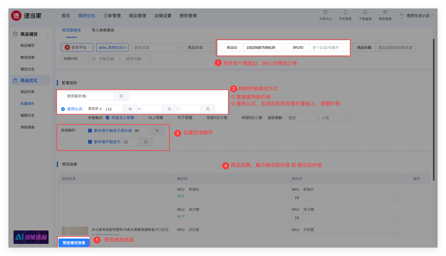2. 批量调价:速当家支持在系统内批量修改商品价格,快速调整定价策略,保障后续订单利润!