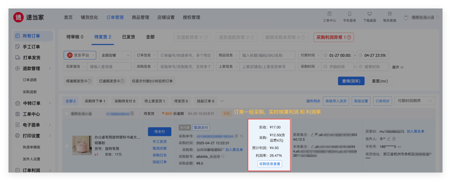 - 手动采购:下单即完成利润核算,利润率未达预期可立即取消支付,避免损失。