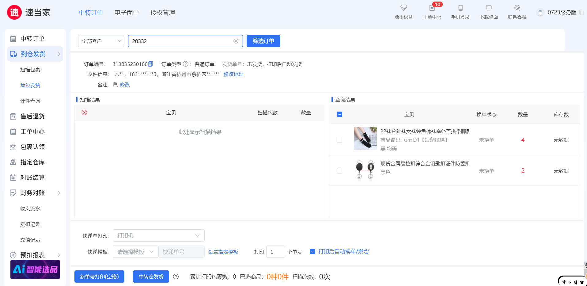 ▪️ 核对无误后,取新单号打印 并 自动换单发货。