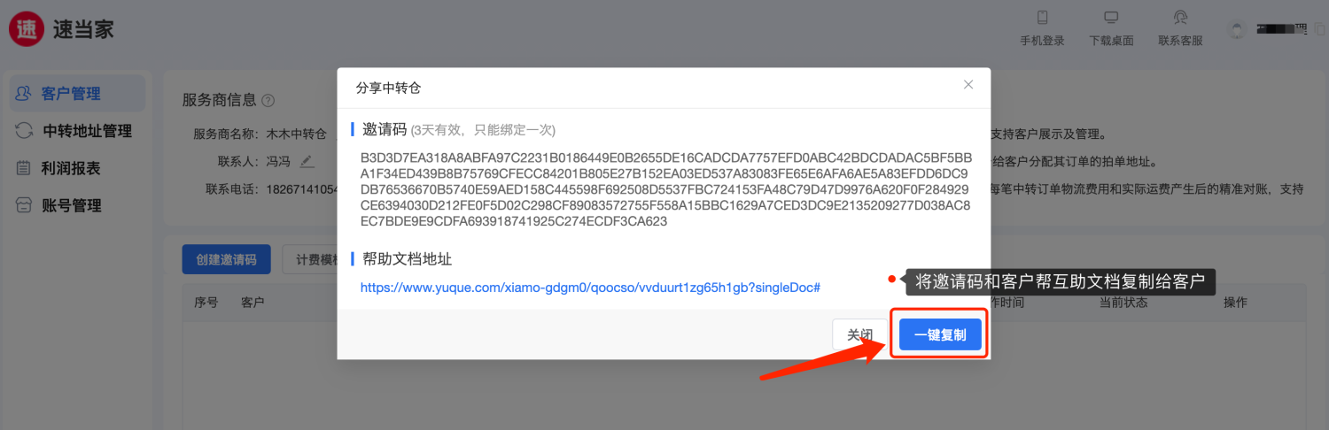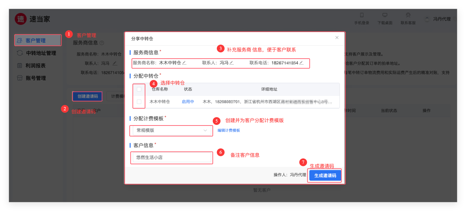 在【客户管理】页面-创建邀请码,创建邀请码时,需填写以下信息: