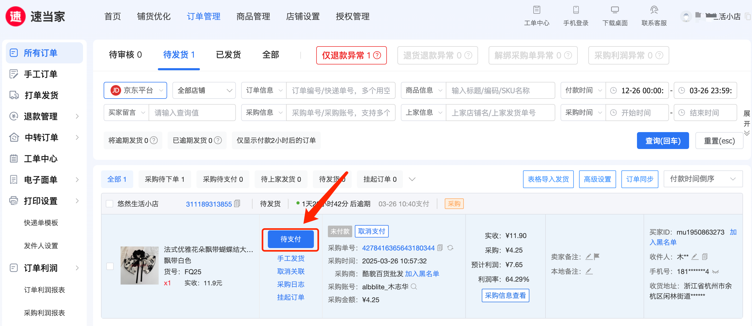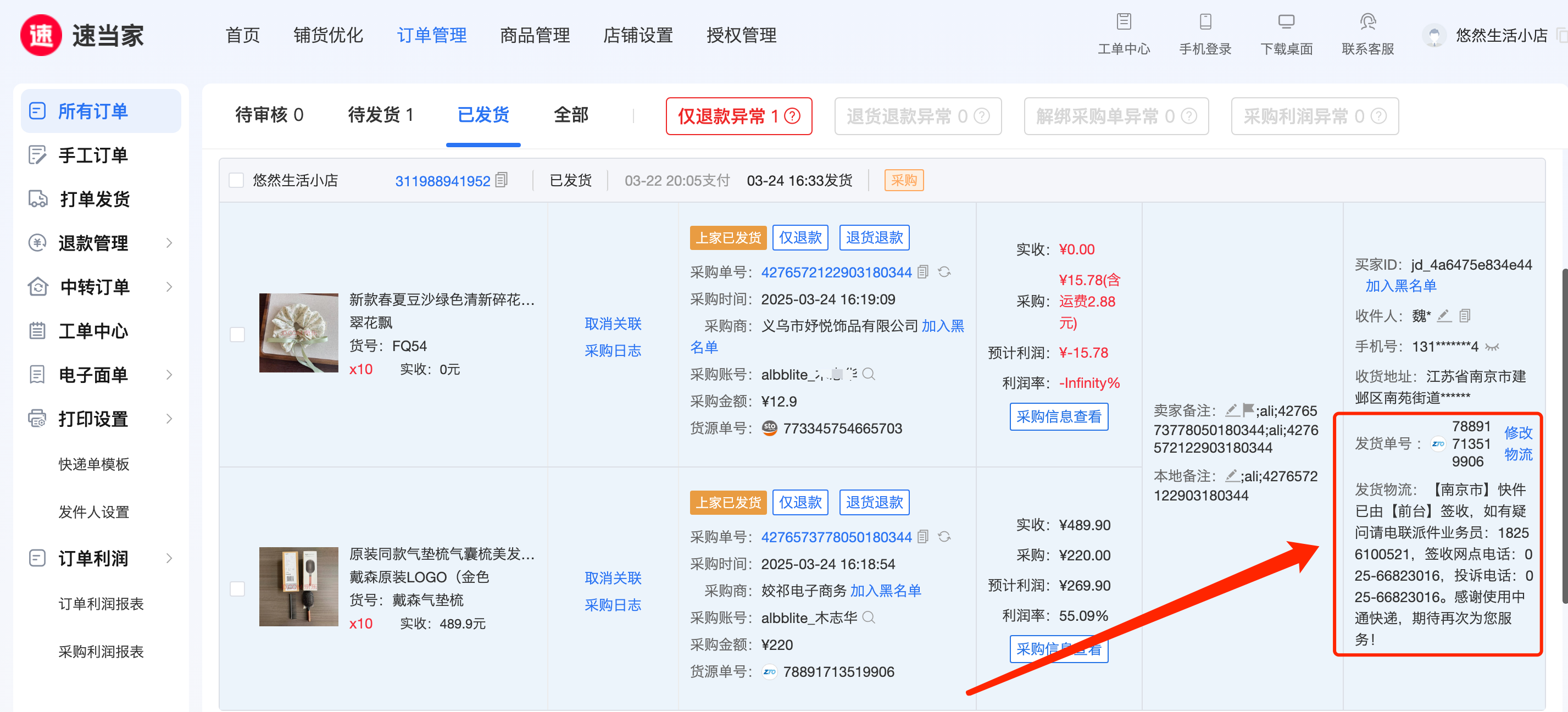二、店铺有了订单,如何采购发货?