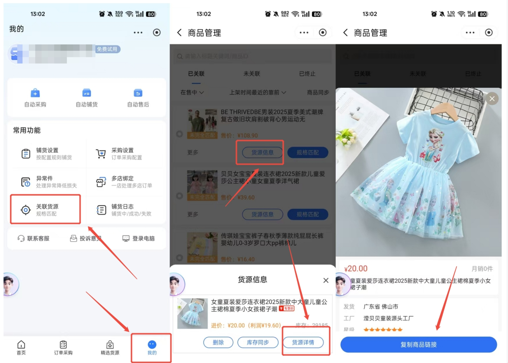 方式2:在【商品管理】-【货源编辑】点击下单链接,即可跳转到1688货源详情页