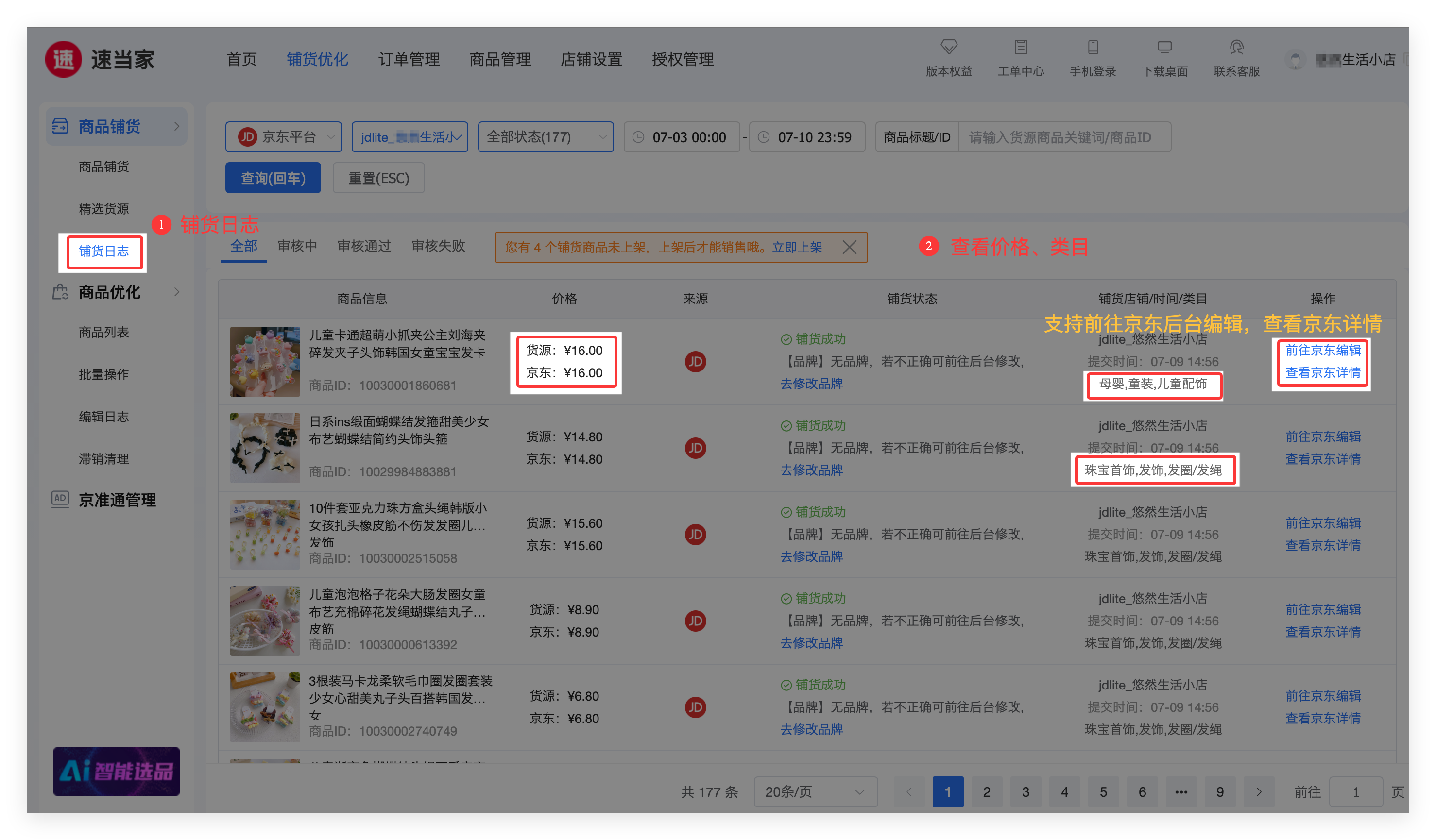 第三步:查看单个商品的铺货结果