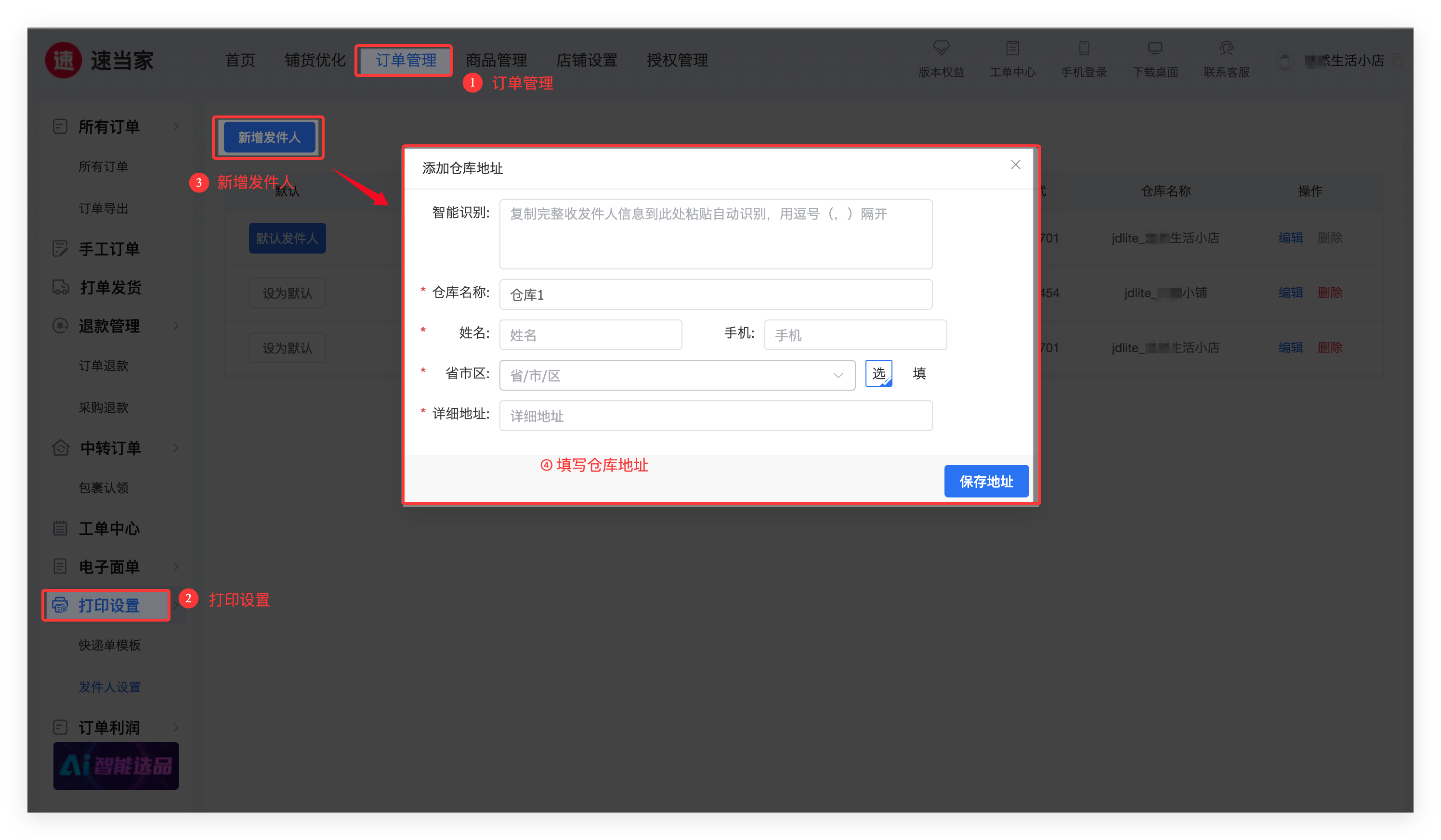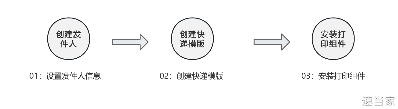 新手进入速当家官网后,需先操作基础配置(发件人、模板、打印组件),才可进行打单发货;