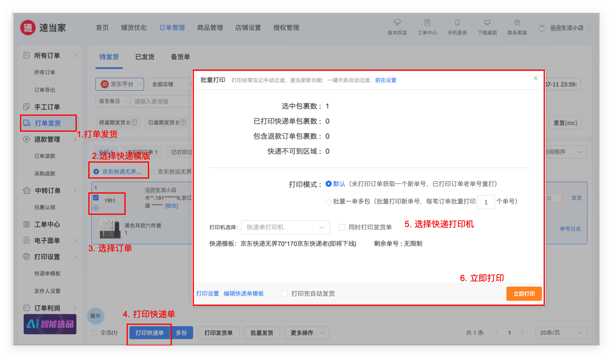 四、开始打印发货