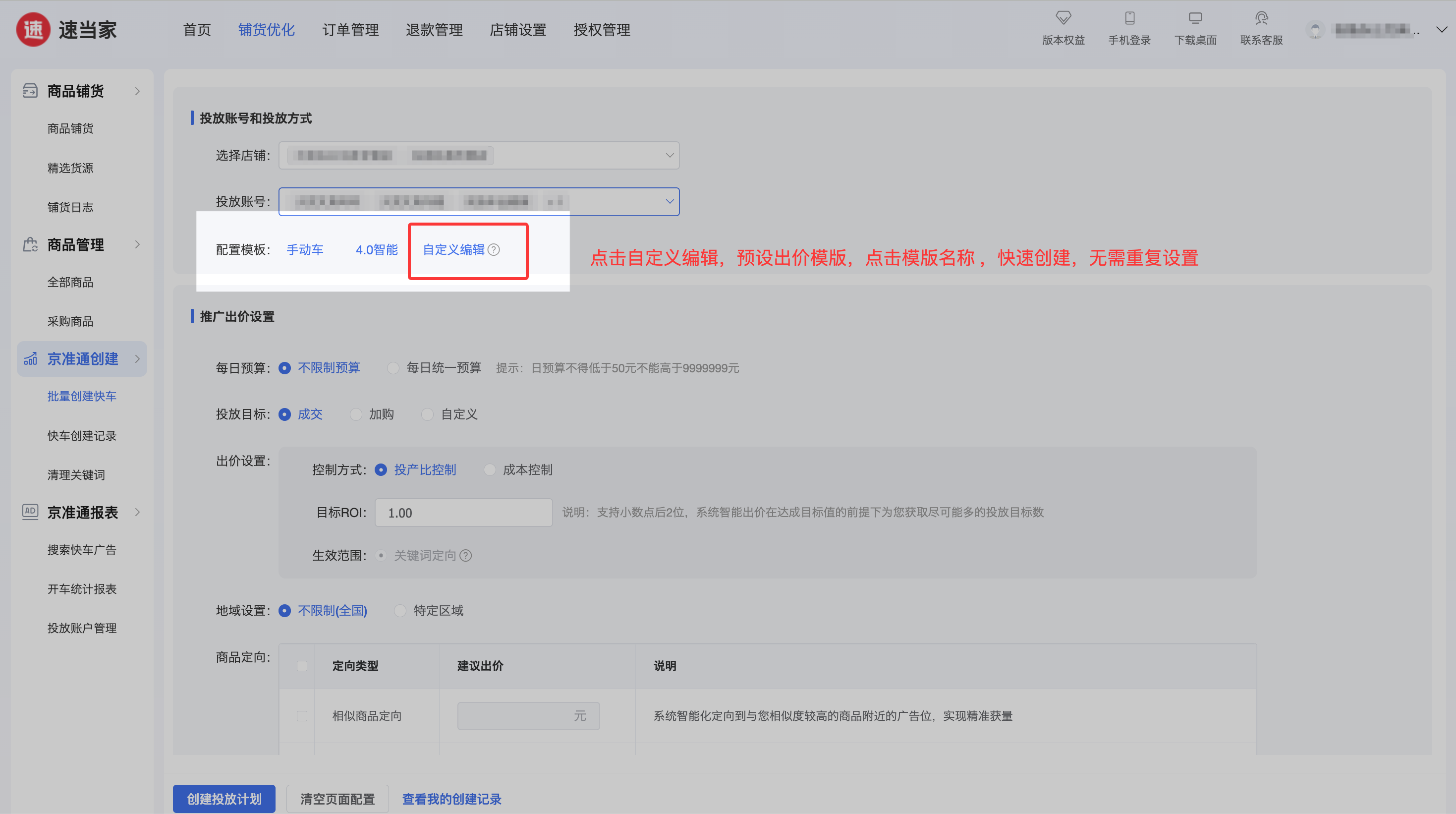 预设出价模版,省时省力:创建计划直接套用模板,不用每次手动设置出价、人群,投放效率翻倍!