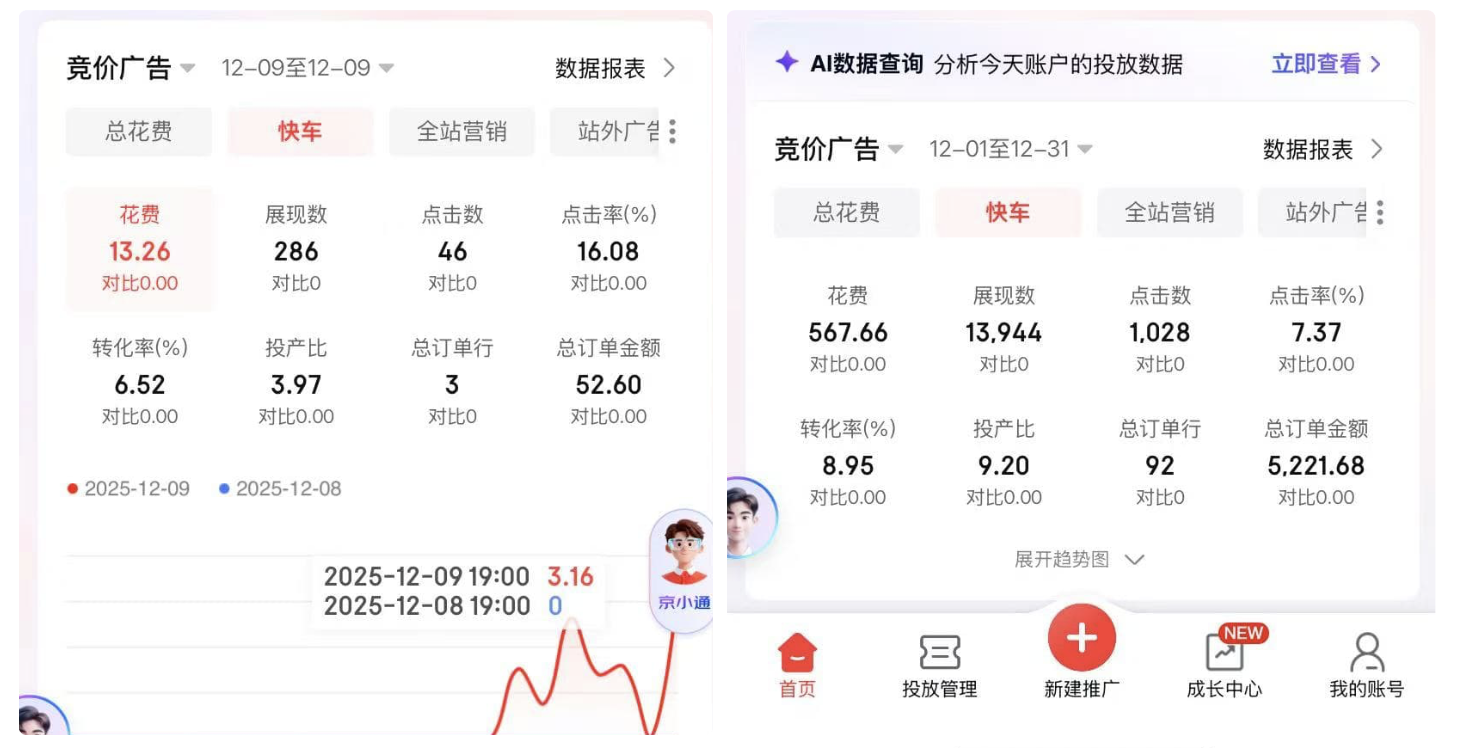 如果您也是推广新手,对着京准通后台抓耳挠腮?赶紧来试试速当家「极速开车」吧! 告别复杂设置,一键解锁高效推广模式!新店测品、新品起量、爆款冲刺,一个工具全搞定!