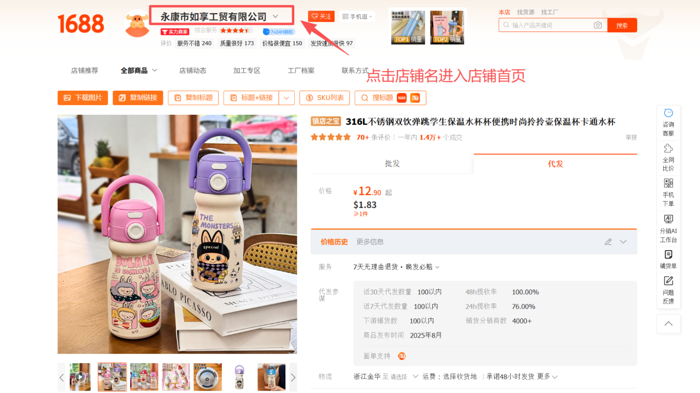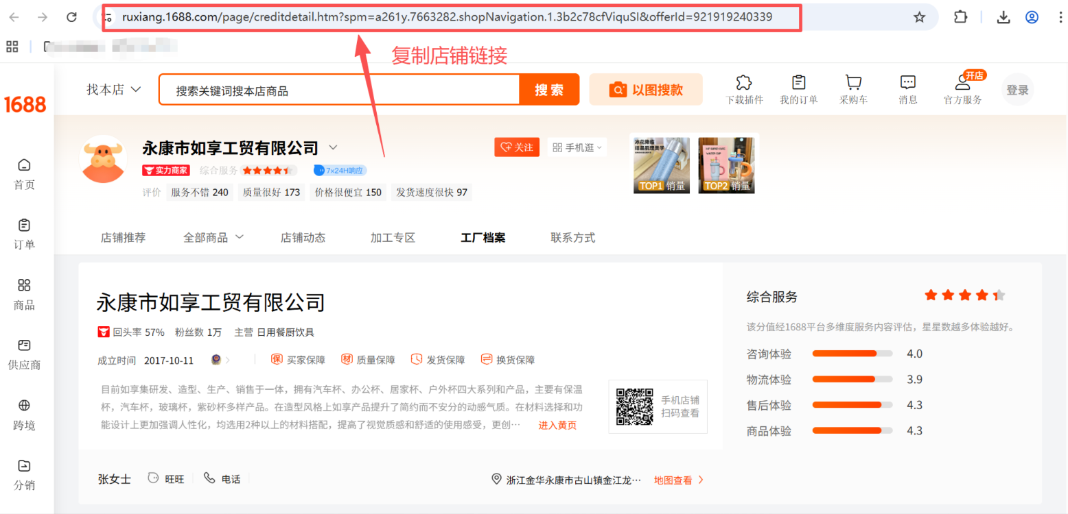 第一步:找到并复制货源店铺链接