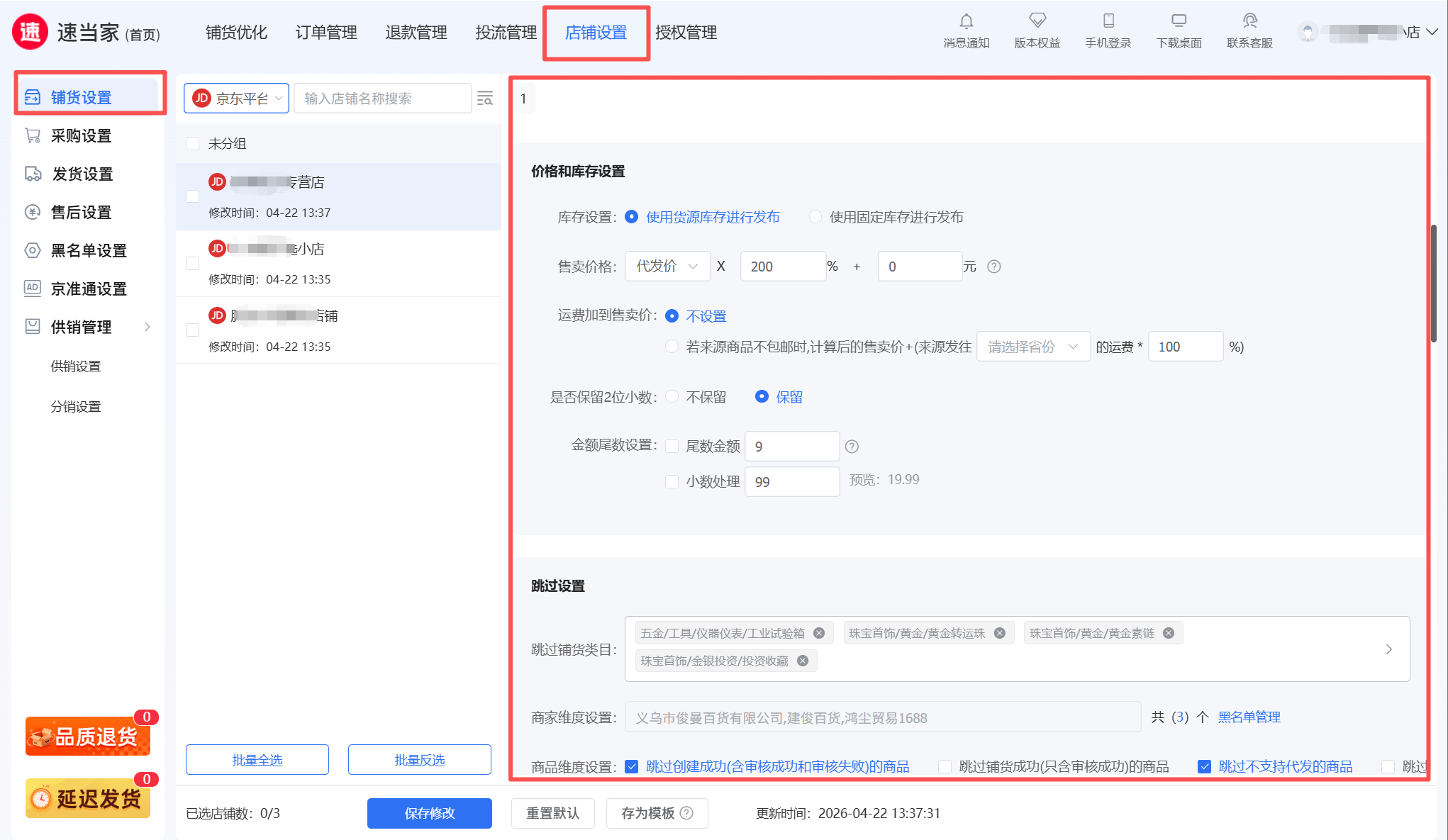 其他铺货设置根据用户的需求进行设置;