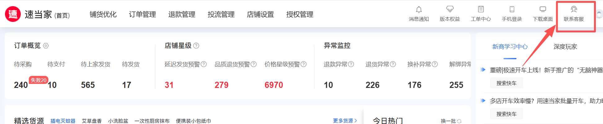 速当家软件使用上有任何问题,联系右上角在线客服,9-22点在线为您服务;